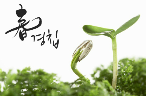 경칩은 태양의 황경(黃經)이 345도에 이르는 날로 양력으로 3월 초인 3월 5일 또는 3월 6일이며 음력으로는 2월 중입니다. 이 즈음해서 날씨가 비교적 따뜻해지게 되는데 이로인해 새로운 싹이 돋아나고 동면하던 동물들이 깨어나기 시작합니다.
