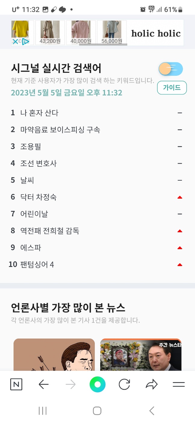 전에는 네이버에서 실시간 검색어를 쉽게 찾아보았지만 제도가 없어지면서 불편했는데 네이버앱에 시그널 실시간 검색어를 추가하는 방법이 있어 너무 좋더라구요.