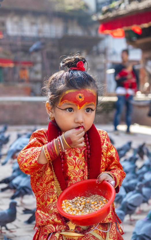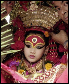 힌두교의 여신들을 섬기는 네팔의 여러 지역에서는 어린 여자아이를 선발해서 자신들이 믿는 현신 혹은 분신으로 삼아서 섬기는 문화가 있습니다. 이 여자아이들을 쿠마리라고 부릅니다.