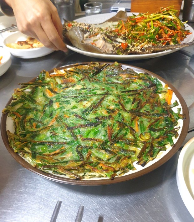 전은 야채, 해산물 또는 고기와 같은 다양한 재료로 만들어진 한국의 팬케이크의 한 종류입니다.