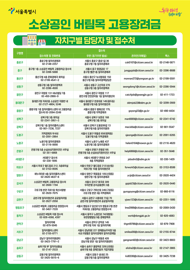 2. 지원대상 : 서울지역 소상공인(접수는 사업주)