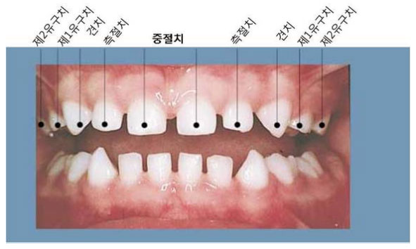 합니다. 약 30개월 전후하여 모든 젖니가 나와 어린이의 교합(치아들의