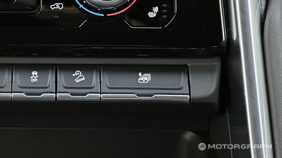 좁은 산길이나 급격한 코너에 다다르면 각을 좁히기 위해 앞뒤로 연신 왔다갔다 하는 불편함 없이 이 버튼을 누르면 코너 안쪽 뒷바퀴를 고정시켜 마치 컴퍼스를 돌리듯 앞쪽만 선회가 가능해집니다. 회전반경을 줄여 빠르게 탈출이 가능하게 도와주는 기능입니다.