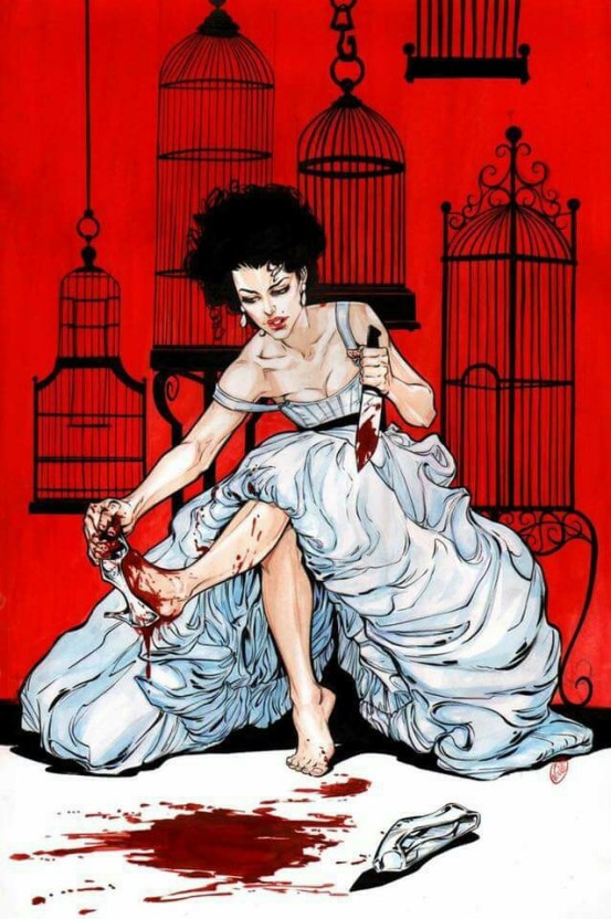 우선 요정의 도움으로 호박마차를 타고 왕자님과의 연회장에 갔다가 자정이 되자 서둘러 연회장을 빠져나오다 유리구두를 잃어버린 신데렐라를 아실 겁니다. 유리구두의 주인공을 찾으러 신데렐라의 집에 찾아오자 둘째 언니가 먼저 신어봅니다. 발이 커서 신발이 맞지 않자 계모는 둘째의 뒤꿈치를 잘라 유리구두에 맞게 신겨 보고요 첫째는 엄지발가락을 자르지만 흐르는 피 때문에 결국 유리구두의 주인공은 신데렐라로 밝혀지죠. 왕자와 결혼에 성공한 신데렐라는 마냥 착하지만은 않습니다. 결혼 후 까마귀와 비둘기를 세 모녀에게 보내 눈알을 파먹게 합니다