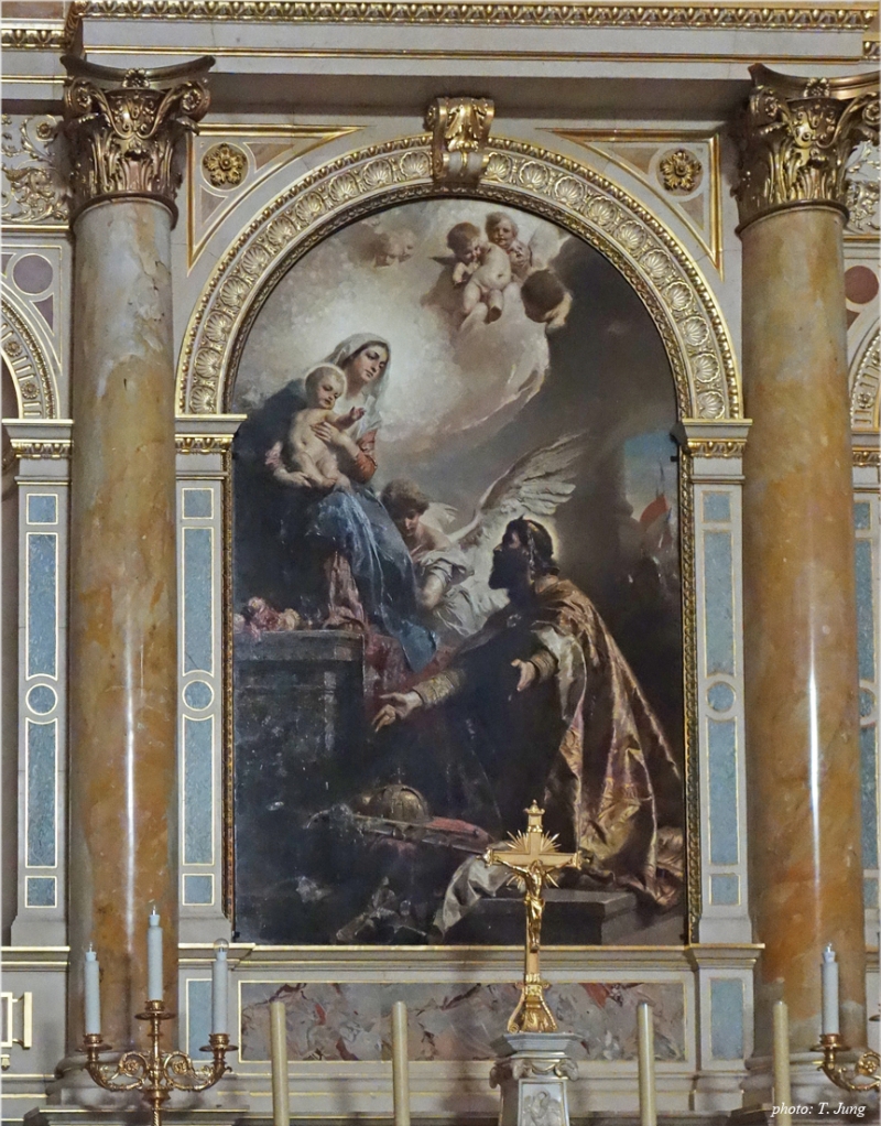 한편 성당 내부에 있는 여러 성화 중에서 특히 눈길을 끄는 것은 헝가리 화가 벤추르(G. Benczúr 1844–1920)의 그림이다. 이 그림은 이슈트반 1세가 천사들이 보는 앞에서 아기 예수를 안고 있는 성모 마리아에게 헝가리 왕관을 바치는 장면을 묘사한 것이다. 이것은 이슈트반 1세가 헝가리를 기독교화 했다는 의미이자 이질적인 헝가리 민족이 유럽의 일원이 되었음을 상징하는 것이리라.