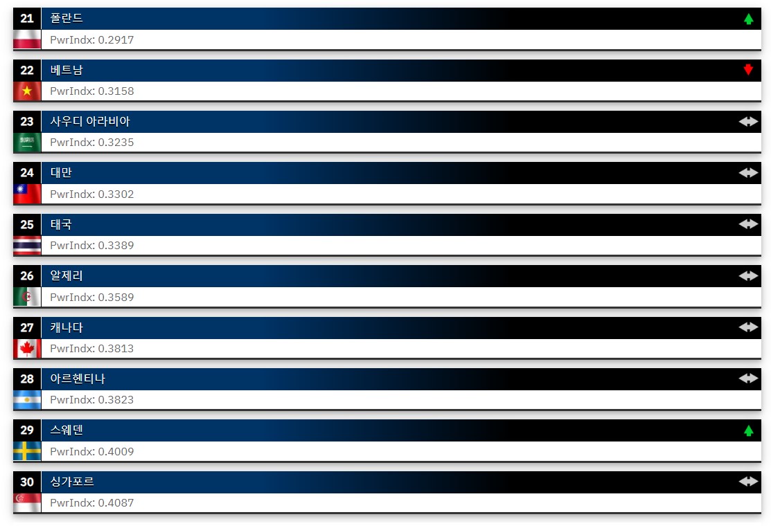 이는 GFP 순위에 의한 것이며 자세한 통계 자료는 여기 <====  를 참조하세요.
