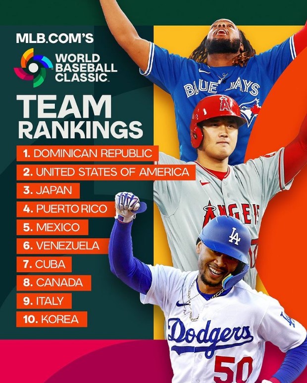 사실 국제대회 성적이 그리 좋지는 않습니다. WBC 공식 인스타 계정에 공개된 우리나라 랭킹은 10위입니다.